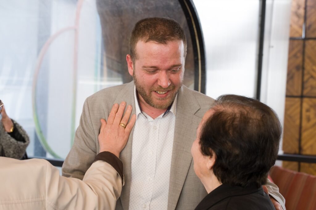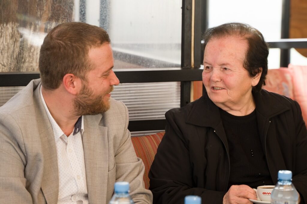 Një moment i veçantë i takimit ishte prania e mësuese Kondës – mësuesja e fëmijërisë së tij, ajo që i mësoi shkronjat, që i dha këshillat e para dhe që sot mbart në sytë e saj kujtimet e para të një udhëtimi që vazhdon ende.